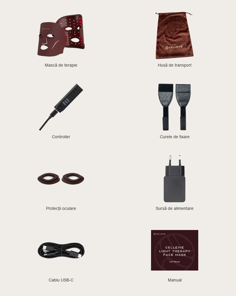 Pentru mască, da — protecțiile oculare sunt incluse în pachet și recomandăm utilizarea lor la fiecare sesiune. Pentru șapcă, deoarece lumina de 650 de nanometri este direcționată către scalp, nu este necesară protecția oculară.